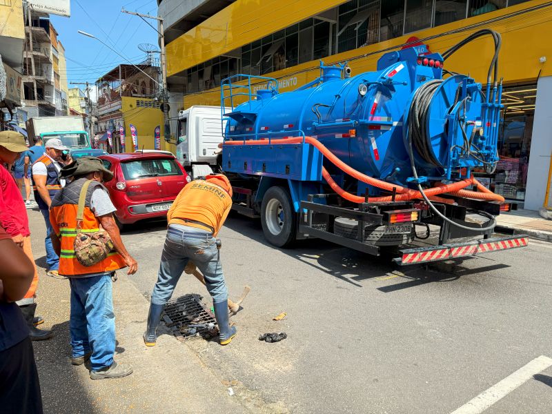 A Prefeitura de Manaus, por meio da Secretaria Municipal de Infraestrutura (Seminf), atua, nesta terça-feira, 22/4, na limpeza e desobstrução de duas caixas coletoras na rua Mundurucus, no bairro Centro, zona Sul de Manaus.