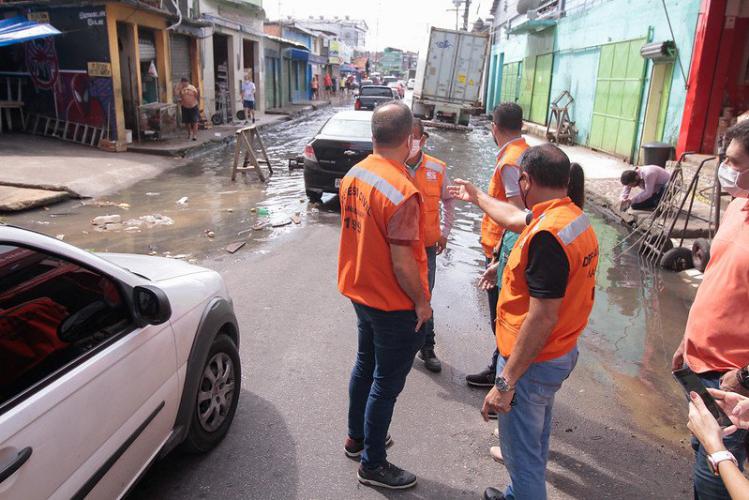A Prefeitura de Manaus reuniu órgãos municipais no Centro da capital, na manhã deste domingo, 2/5, para avaliar a rua dos Barés, que já apresenta sinais de alagamento ocasionados pela subida do nível do rio Negro, bem como as demais vias que serão afetadas nos próximos dias pela cheia deste ano.
