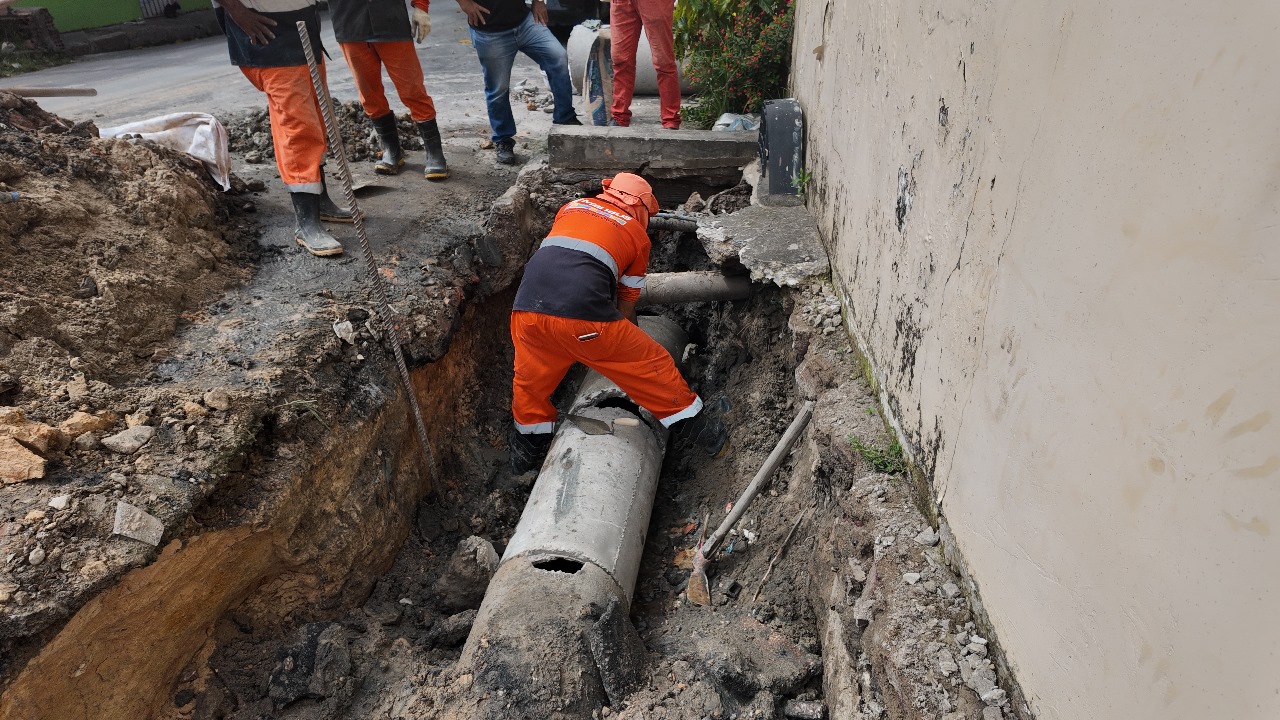 A Prefeitura de Manaus, por meio da Secretaria Municipal de Infraestrutura (Seminf), executou, nesta terça-feira, 20/5, a substituição de cinco tubos de concreto da rede de drenagem na rua Aristofano Antony, no bairro Petrópolis, zona Sul.