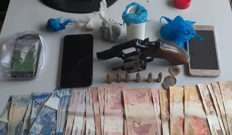 Com eles foram apreendidas drogas, arma de fogo, munição e dinheiro