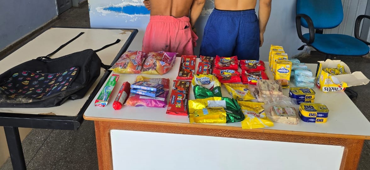A Polícia Civil do Amazonas (PC-AM), por meio da 70ª Delegacia Interativa de Polícia (DIP) de Juruá (a 674 quilômetros de Manaus), prendeu em flagrante, na quinta-feira (24/07), Elinaldo Mendonça, 26, e José Francisco Medeiros de Oliveira, 30, conhecido como “Bambu”, pelo crime de furto qualificado em um mercadinho localizado no bairro Nova Esperança, naquele município. Na ocasião, os policiais também recuperaram os produtos alimentícios subtraídos do estabelecimento.
